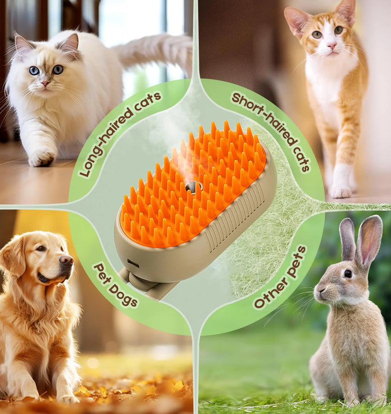 1. Multi-purpose Grooming: This steam cat brush removes loose hair and provides a soothing massage, reducing shedding while making bonding time more enjoyable.