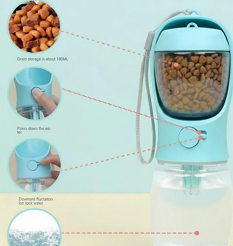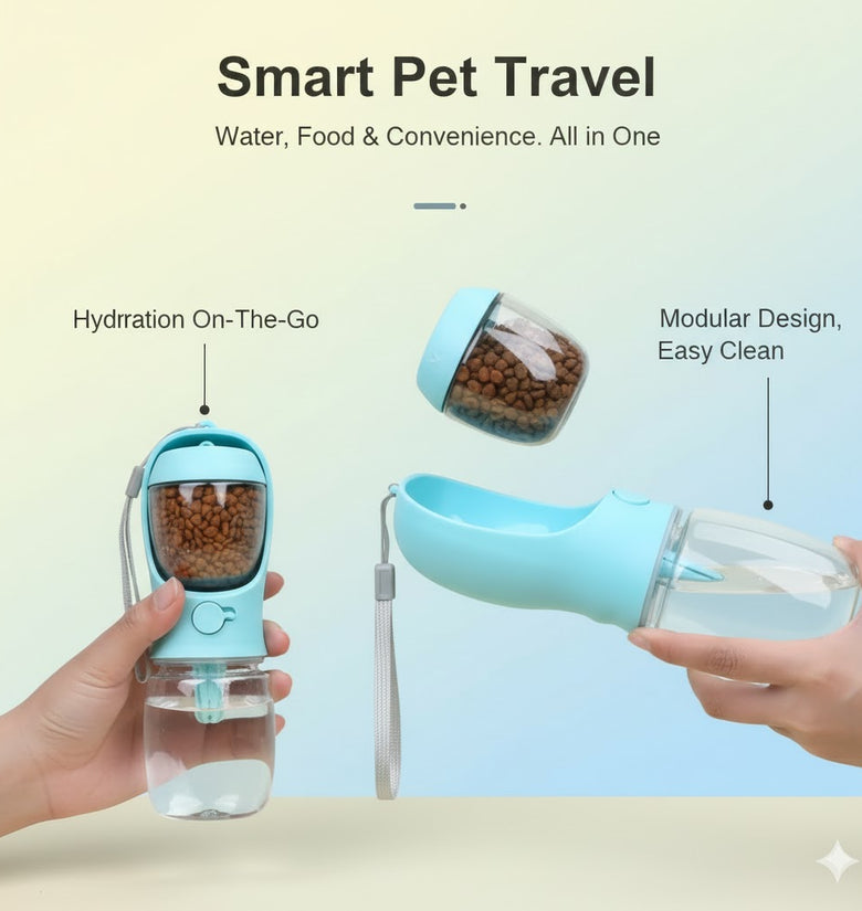 “Ditch the bulky gear — enjoy effortless adventures with this all-in-one water & food bottle for your furry friend!”